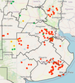 El último reporte de Spray Timer de xarvio® FIELD MANAGER en trigo activa señales de alerta por enfermedades foliares. Roya amarilla, roya de la hoja y mancha amarilla muestran niveles preocupantes de riesgo en toda la zona triguera.