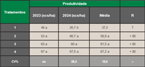 Produtividade em função dos tratamentos aplicados no ciclo agrícola 2023/2024: