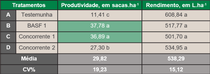 Produtividade e rendimento da lavoura submetida aos tratamentos. Cabo Verde – MG, 2024: