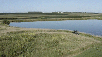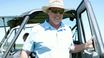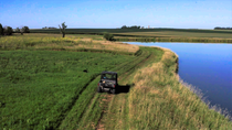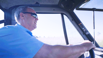 Farmer, Kent Johnson, drives to one of his soybean fields