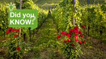It’s grapes harvest time. Have you ever noticed roses planted at the top of grapevine rows? Roses have been used as an early warning system to help growers decide when to apply crop protection measures. As roses are very sensitive to fungal infections (e.g. powdery mildew), they show disease symptoms before these appear on the grapevine. By monitoring rose bushes, growers are therefore informed about the health of the vineyard.